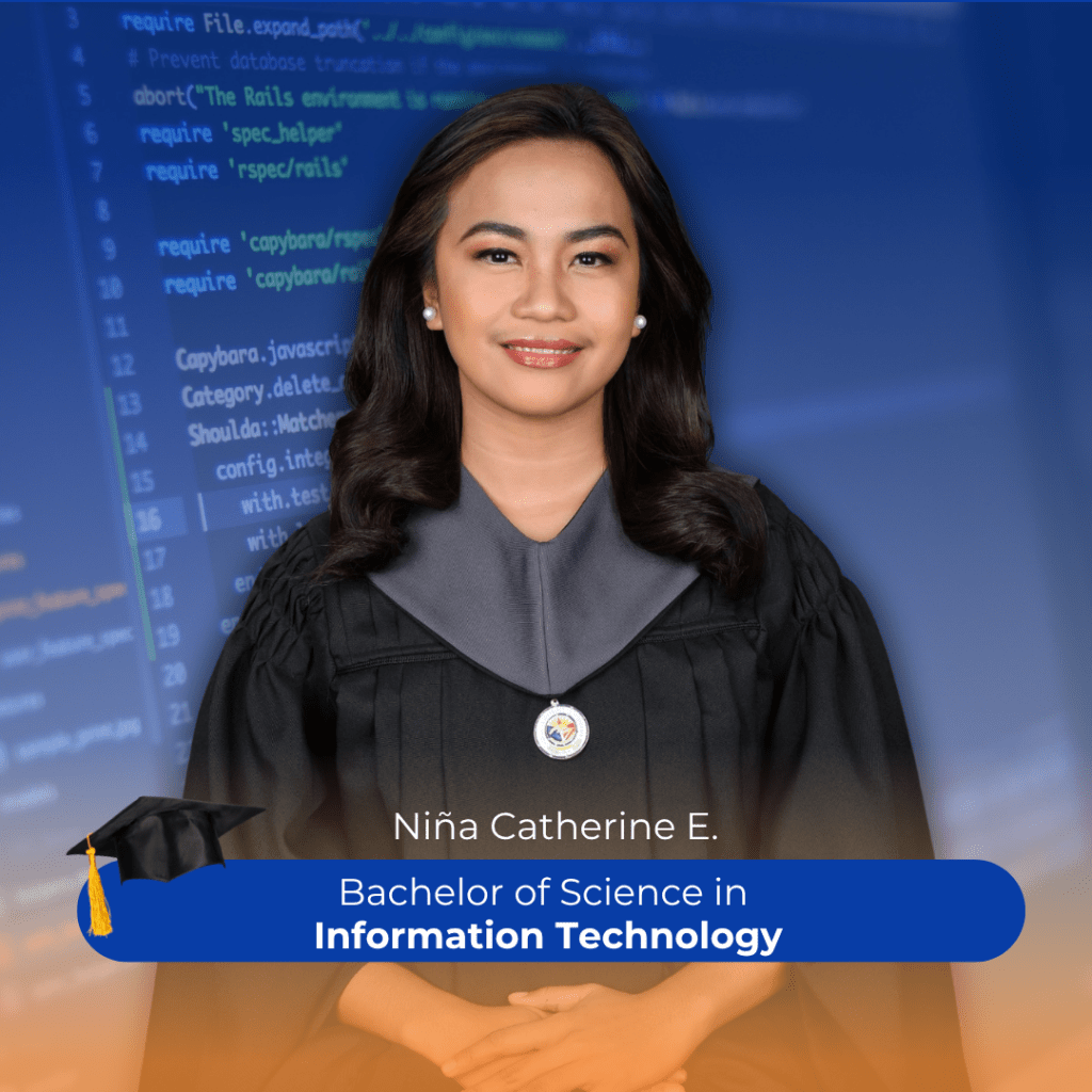 Niña recently earned her degree in Bachelor of Science in Information Technology from Pamantasan ng Lungsod ng Muntinlupa. Aside from balancing her academics and her many services in the Community and Foundation, she also manages to take a leadership part in their barangay’s local youth organization, the Espeleta Kaliwa Youth Organization (EKYO), where she is elected as the Auditor, reflecting her dedication and leadership abilities.
